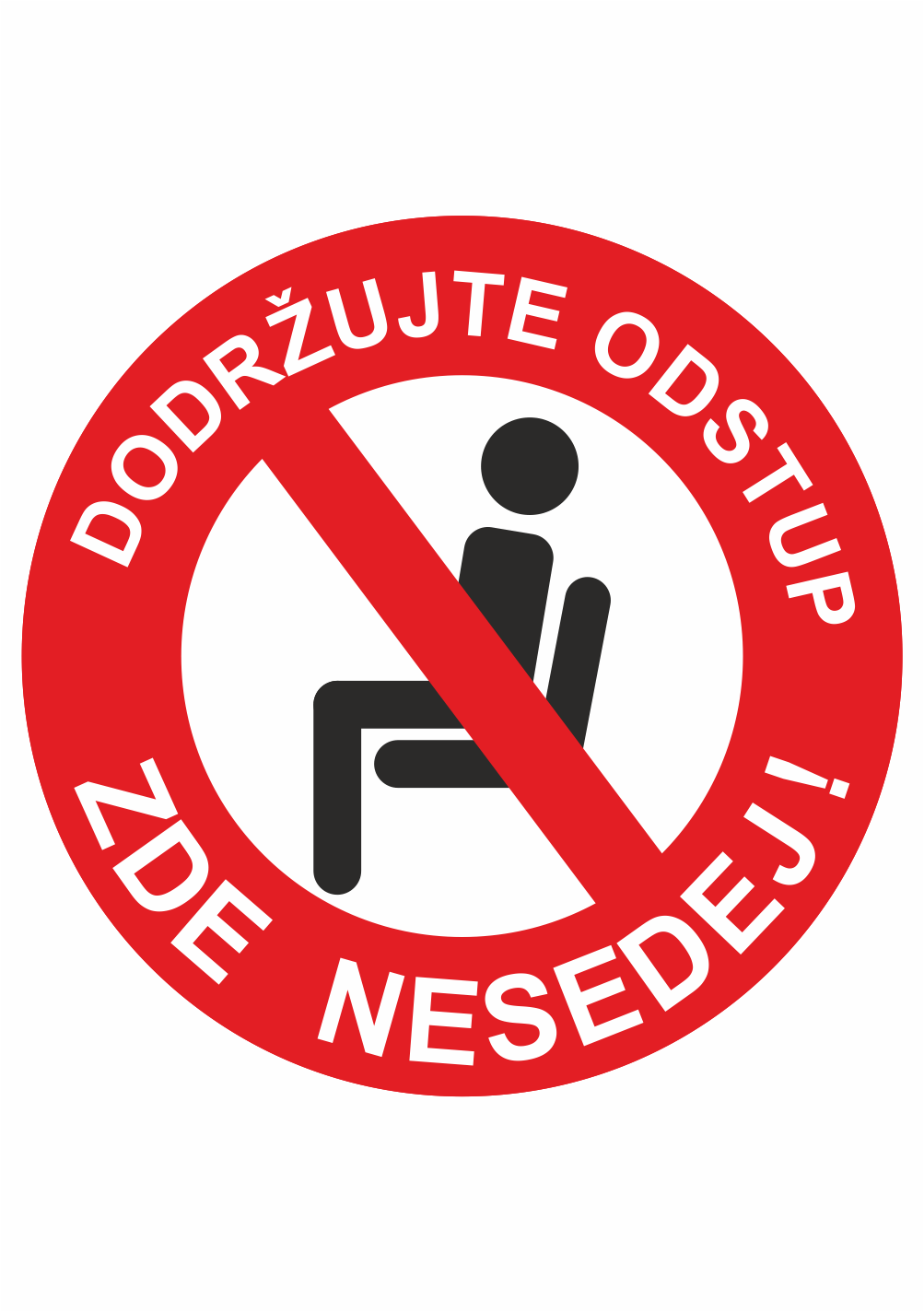 Bezpečnostní značení – Dodržuj odstup / Zde nesedej.